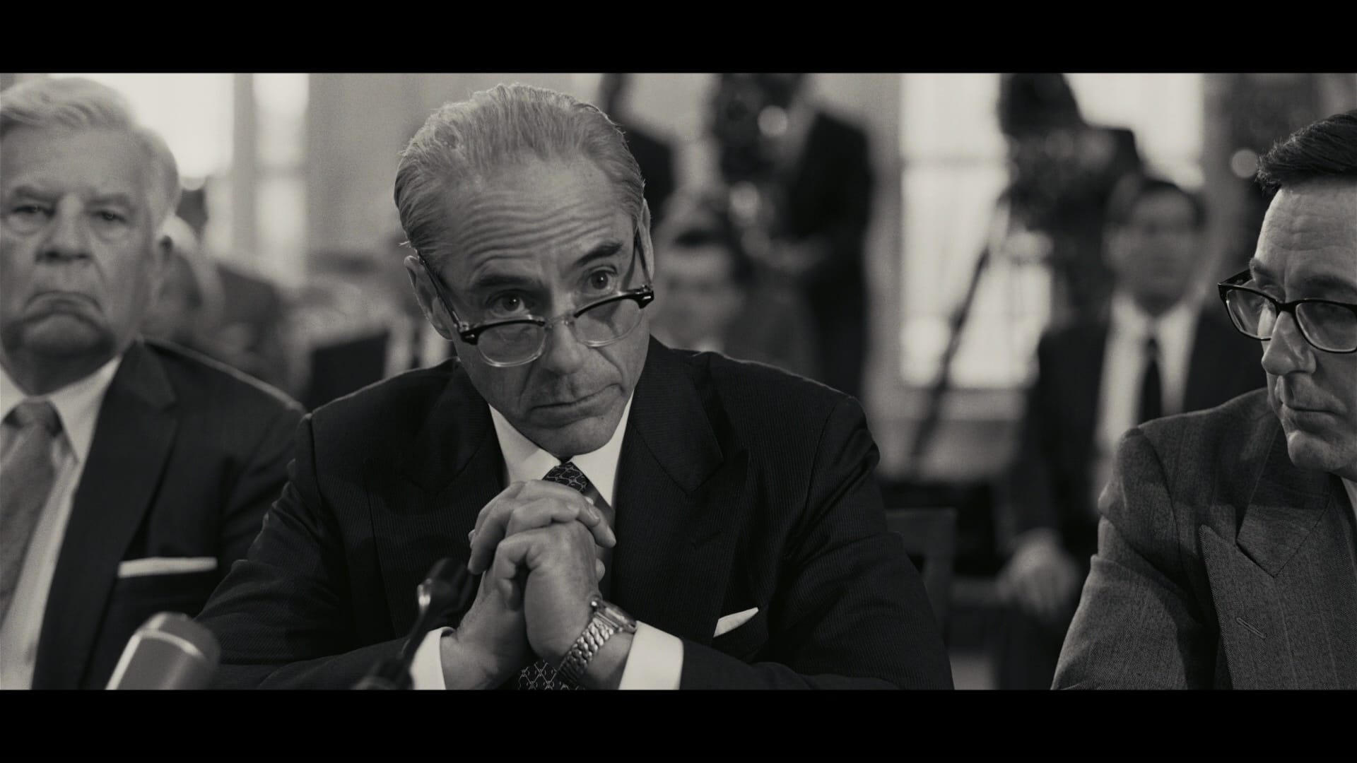There’s also a framing sequence built around a 1954 hearing over Oppenheimer’s security clearance that’s tied to the Senate confirmation of Lewis Strauss as Eisenhower’s Secretary of Commerce five years later. It’s a lot, setting the stakes in the “J. Robert Oppenheimer has to think about his whole life before he goes onstage” mode, but it also gives us Robert Downey Jr. as a particularly pissy Strauss, the closest thing Nolan offers to a villain beyond the Axis powers. (Fun fact: Inception, Nolan’s actual heist movie, doesn’t really have a villain either.)