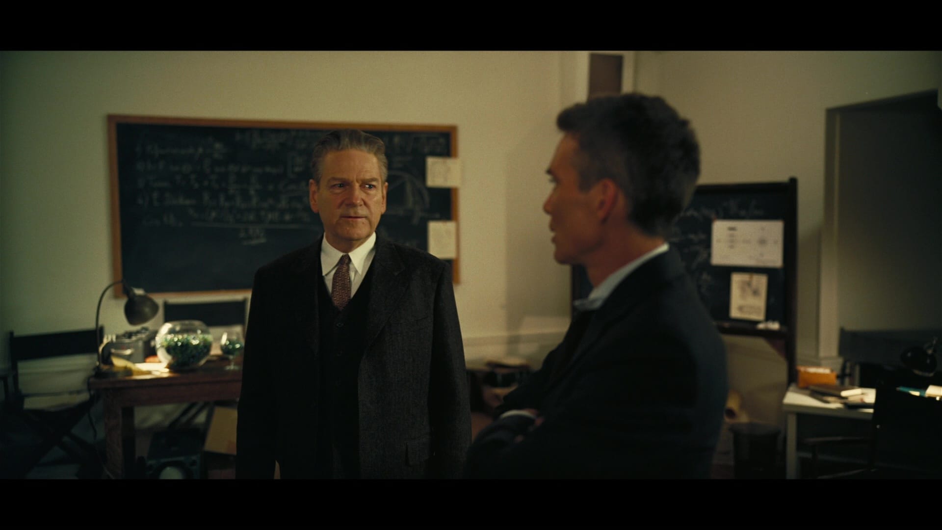 Whatever you decide it means, Murphy’s is a very good performance; he carries the film’s stress on his shoulders, remaining still and calm as everyone around him loses their goddamn minds over this setback or that betrayal. If this is a heist picture, Matt Damon’s General Groves is the money guy, cranking about how much everything will cost while still signing every check; Kenneth Branagh’s Niels Bohr is the Michael Caine mentor/fixer, turning up to admire our hero’s skills and provide reassurance that he’s on the right path.