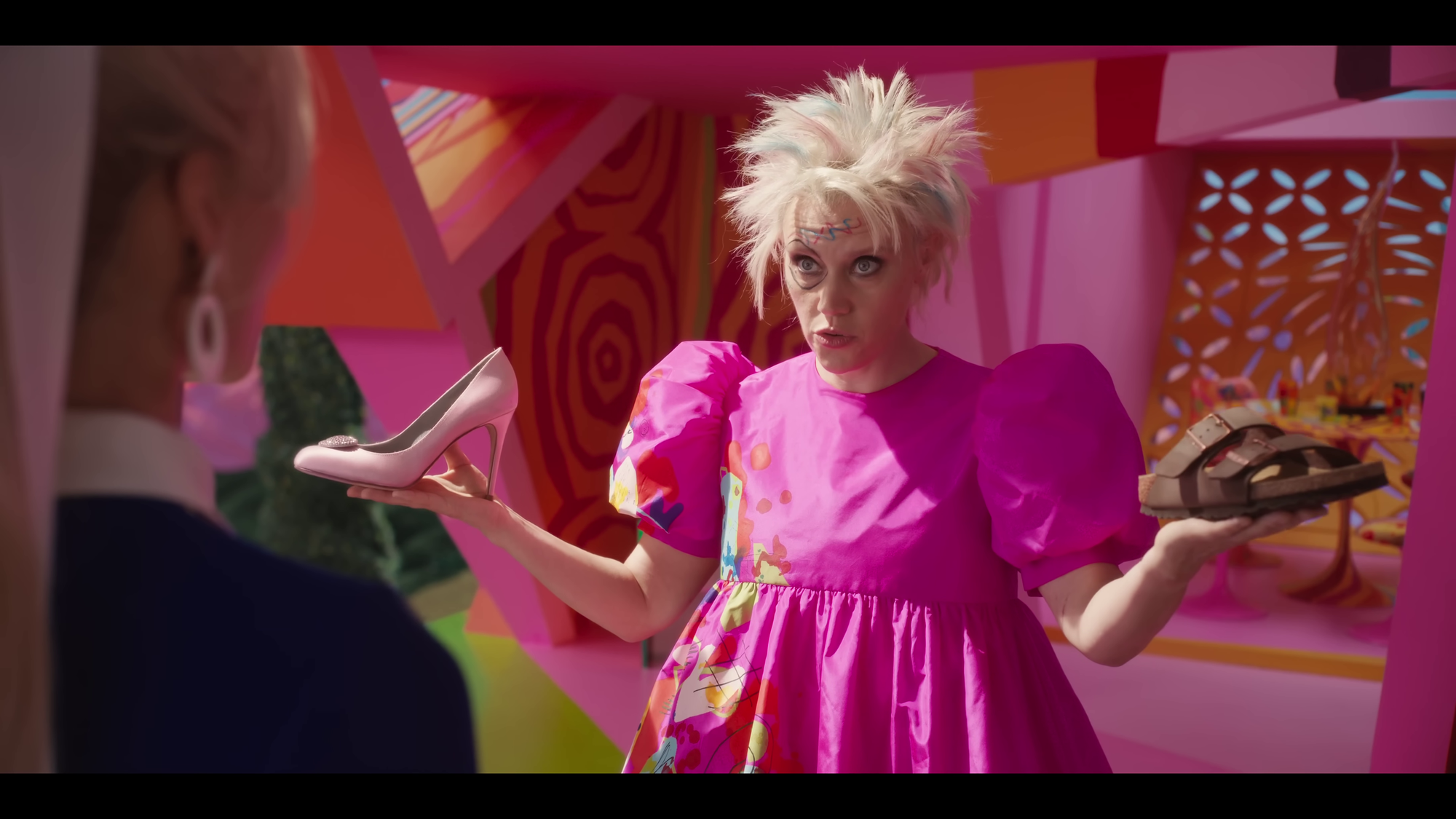The featurettes on both the 4K and Blu-ray discs keep the party going, with Gerwig and her collaborators happily sharing credit for this idea or that gag; Ryan Gosling gets several shout-outs for going above and beyond in every capacity, even suggesting that Ken’s jumpsuit be covered with Barbie B’s to better sell how deeply his devotion runs. There’s a segment about how shooting on soundstages let the cast stay immersed in Barbie Land’s manufactured reality – where everything is about 22% smaller than human-scale, the same ratio as the doll playsets – and another about the process of transforming Margot Robbie into Stereotypical Barbie, and how many looks costume designer Jacqueline Durran tried for the character before realizing that she’d need all of them. Kate McKinnon’s Weird Barbie gets her own featurette as well, because of course she does.