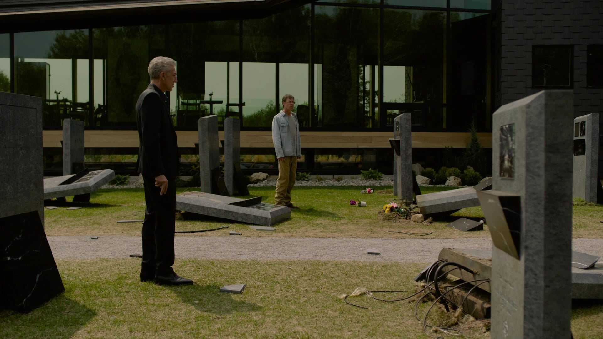 Where Sphère’s Blu-ray of Crimes of the Future came with an EPK, The Shrouds is a bare-bones movie-only release. (It's shipped in a DVD-scaled digipak, which is … a choice.) The film does look very good, the 1080p/24 master offering an excellent representation of Cronenberg’s chilly interiors and empty open spaces, while the Dolby Digital 5.1 audio does a fine job suggesting of the airlessness of Karsh’s life, even when he's outdoors. The scenes in his Tesla have a specific tightness to the mix that suggests how suffocating the space is, even though he’s alone. Or, more likely because he’s alone. And he always will be.