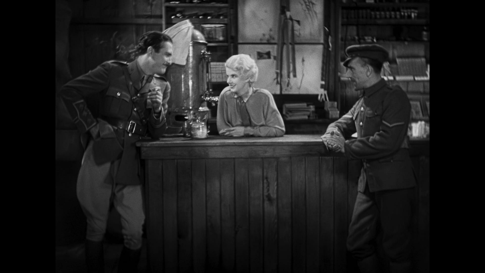 Watching Hell’s Angels almost a century after its debut feels like peering into a divergent universe of Golden Age cinema. It looks like nothing else, thanks to Hughes’ near-infinite resources; he was able to shoot some sequences in color, and tint others in vivid blue or purple. He released the picture in Magnascope, a gimmick format which wowed audiences by slowly expanding the 1.37:1 Academy image at key moments to fill a towering frame. It was more about creating scale than width, and it would have been very impressive in a big enough cinema. (Criterion’s transfer presents the Magnascope scenes at 1.54:1, expanding the frame at the sides.) The sound mix, cleaned up but preserved in its original mono, is also remarkably sophisticated for its day, with the whines of engines, the sputtering of propellors and the chatter of machine-gun fire. And because Hell’s Angels was made before the advent of the production code, there’s an edge to the love triangle – okay, a horniness – that feels surprisingly modern.