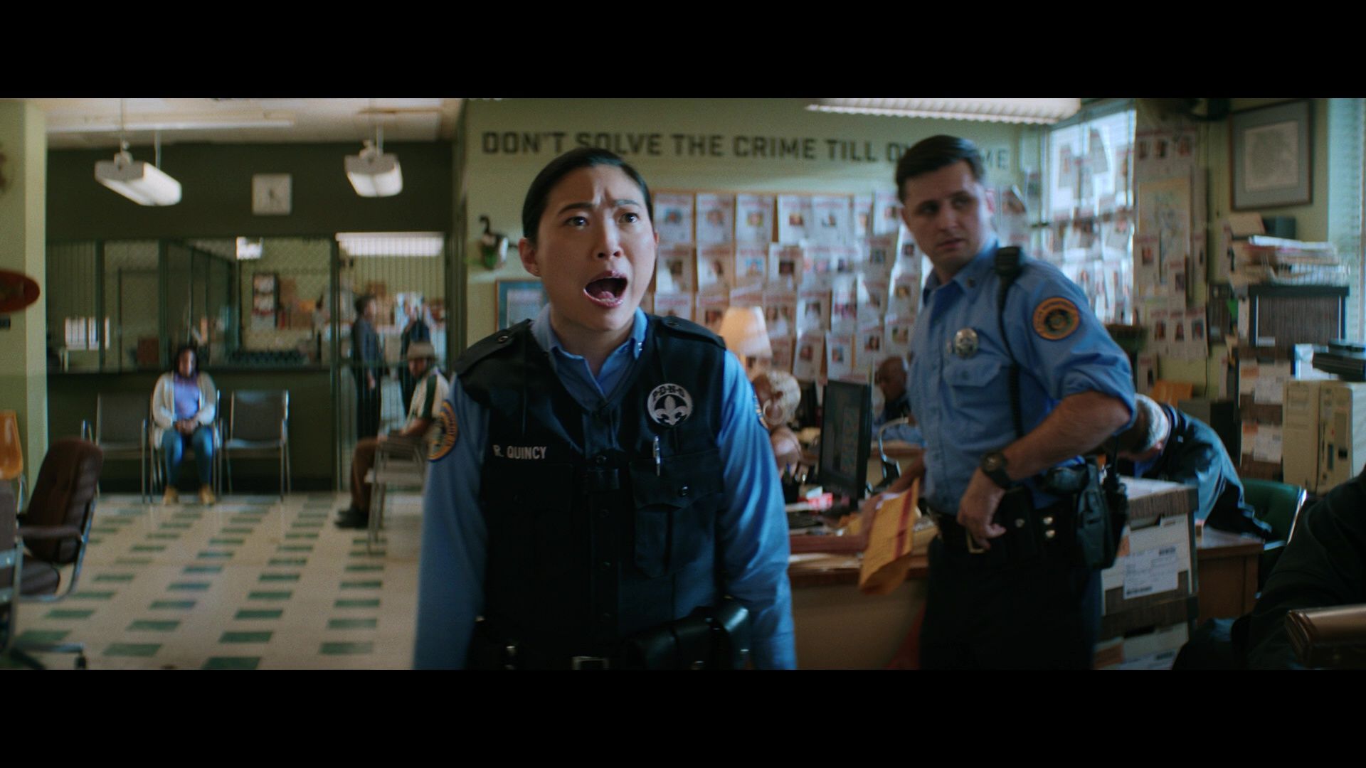 There’s also a crew commentary featuring eight members of the production team – screenwriter Ridley, producer Samantha Nisenboim, makeup effects artist Christien Tinsley, digital colorist David Cole, post-production editor Noah Cody, VFX supervisor Jamie Price and sound editors John Marquis and Nancy Nugent – that offers a nifty examination of the production from both creative and technical angles, though director McKay is conspicuously absent; he’s also barely acknowledged in the featurettes, which is odd and a little off-putting for a movie with this much of a supplemental package. McKay did plenty of promotional appearances during the film’s release this spring, so it doesn’t seem like there was a lot of behind-the-scenes drama; maybe he was just too busy to sit for the EPK sessions.