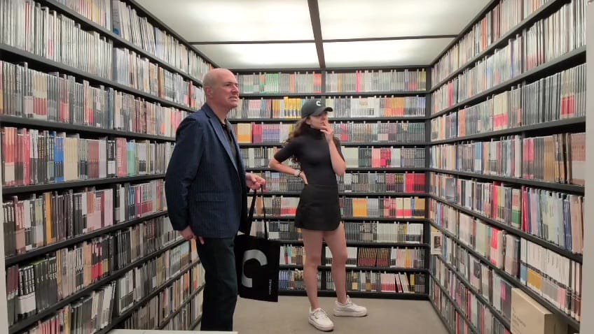 Built inside a Freightliner MT45 step van, which is a fun thing to say, the mobile closet is not a precise re-creation of the New York space, but an incredible simulation. Per Criterion’s FAQ: “The Criterion Closet in the Criterion office is a few inches narrower, and the ceiling is slightly higher, but the contents and arrangements of the two Closets are identical.” Titles are lined up by collection number rather than alphabetically or by filmmaker, which is not the way I would do it but no one asked me.