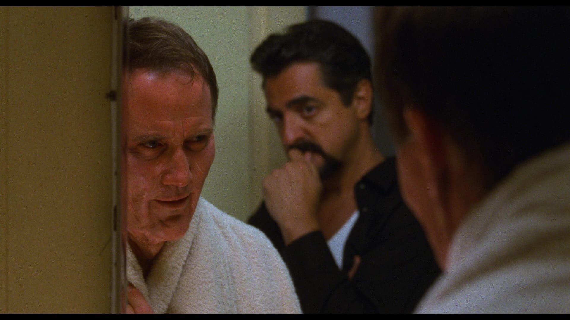 A still-chipper Mantegna returns for a new commentary with producer Mitchell Galin; writers Lee Gambin and Aaron Dries provide a more scholarly guide to the movie on a third track. The disc also offers clear-eyed conversations with director Holland, co-star Jenney and makeup effects artist Vincent Guastini, who did the day-to-day application and maintenance of Burke’s makeup – and explains why it looks the way it does.