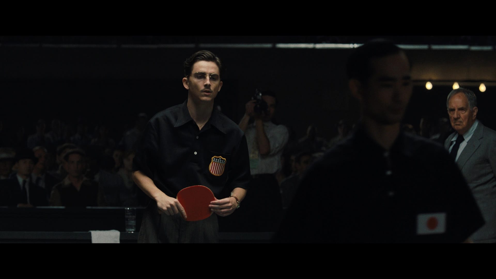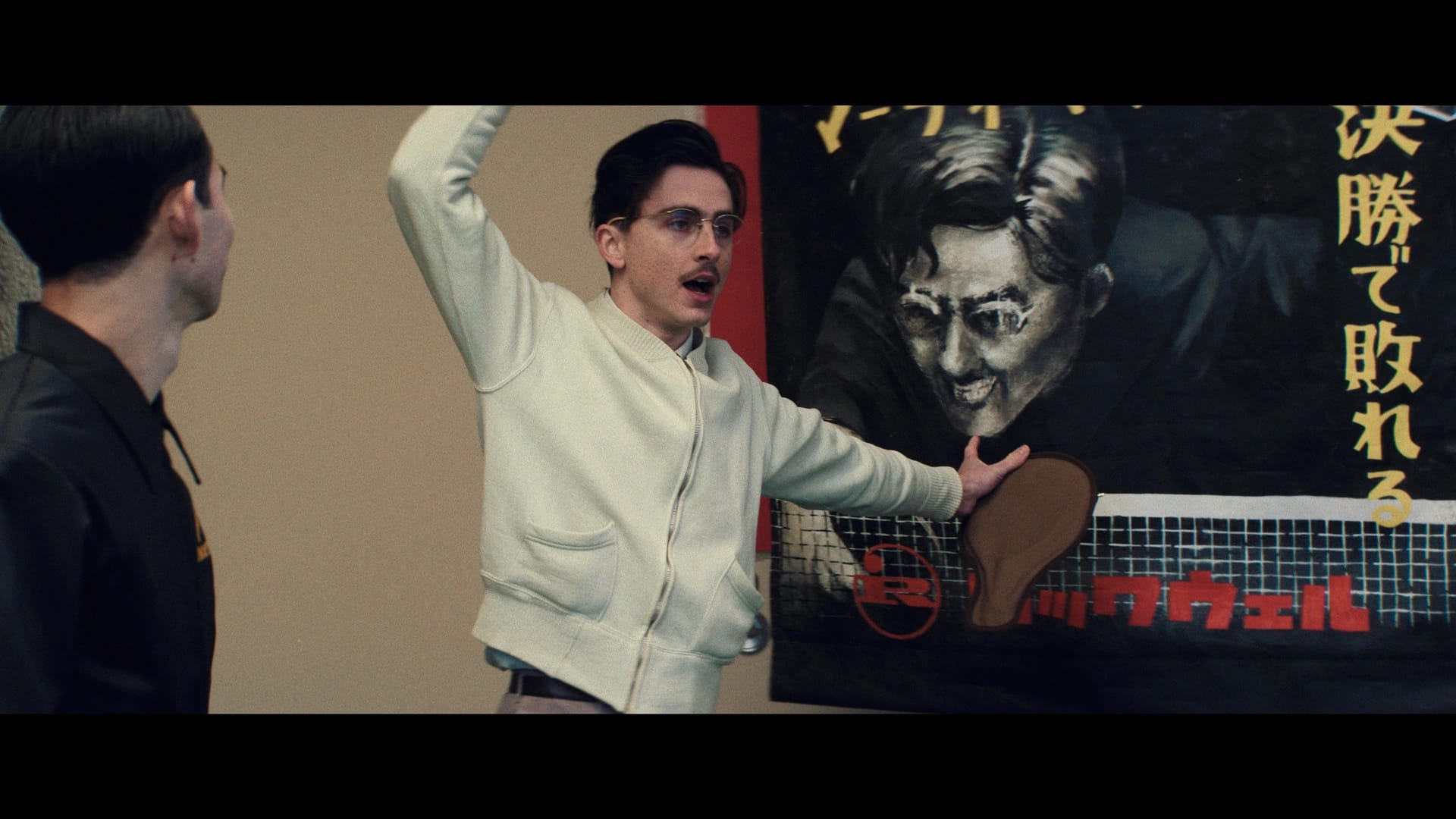 This is not to say that Chalamet isn’t giving a good performance. He’s doing exactly what the movie needs him to do, disappearing into the role of a hectoring, driven asshole who cares about nothing other than being recognized as the world’s greatest table-tennis player. The problem is, literally no one else in his orbit cares about competitive table tennis; it’s catching on overseas, but post-war America is barely even aware it’s a sport. Marty Mauser wants to be the face of it, but he’s got the kind of face you want to hit with a skillet. The only person who can tolerate him is his childhood friend Rachel (Odessa A’zion), and only long enough to bang him in the storeroom of the shoe shop where he’s currently working.
