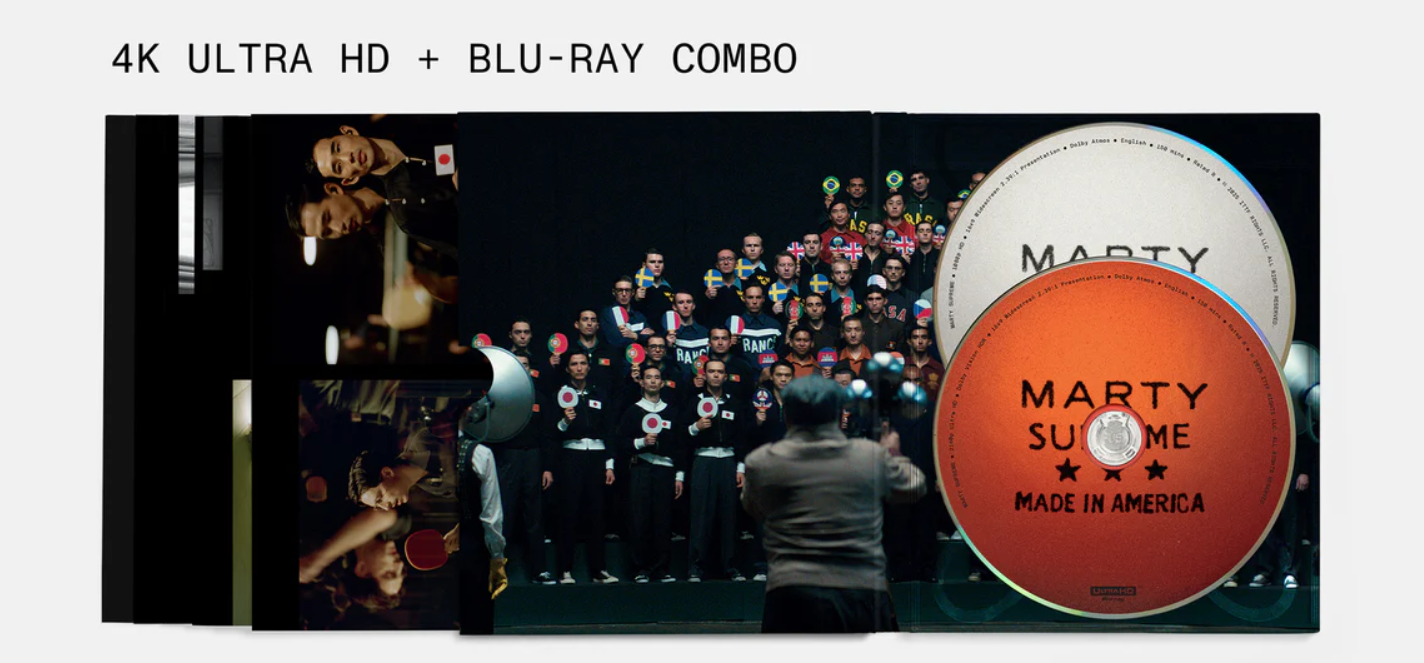 Elevation is releasing separate 4K and Blu-ray editions of Marty Supreme, each with the same commentary, camera test and “Dream Big” featurette that appear on the A24 BD. No art cards, though, if that’s a deal-breaker.