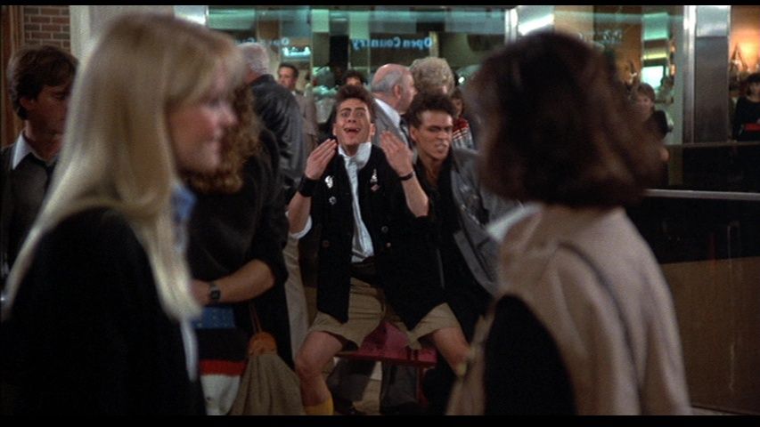 The “real” versions of the feature are in 4K, of course, in a transfer that looks considerably darker and messier than the one on Universal’s earlier Blu-ray, which had so much noise reduction that some scenes appeared plastinated, their colors smeared into pastels; Arrow’s 4K restoration, mastered from a scan of the original negative, reminded me what an ’80s teen comedy was supposed to look like. Once again, I am amazed and delighted by the way UHD and HDR just love celluloid. (The stills here are pulled from Universal’s DVD, because I still can’t do screen grabs from 4K discs; sorry about that.)