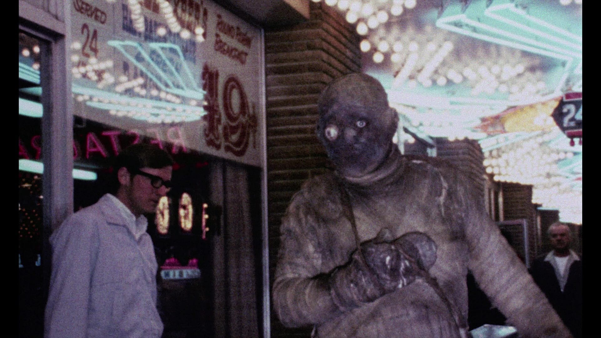Finally there’s Oliver Drake’s The Mummy and the Curse of the Jackals, which is easily the least of these films – just a dopey grindhouse programmer from the low-rent Vega International shingle starring Anthony Eisley as an unlucky archaeologist who becomes a were-jackal, putting him on a collision course with a resurrected Egyptian princess (Marliza Pons) and the lumbering mummy she commands – but the care with which it’s been restored and presented here is truly remarkable. Severin’s Blu-ray is designed in tribute to Vega, which cranked out horror and sexploitation junk that Ed Wood would have disowned, featuring a new master of the film (“scanned in 4K from the blow up internegative discovered at Eding ‘Lucky’ Brown’s Los Angeles estate sale”) that, while nowhere near pristine, still looks a lot better than the version currently streaming on Tubi.