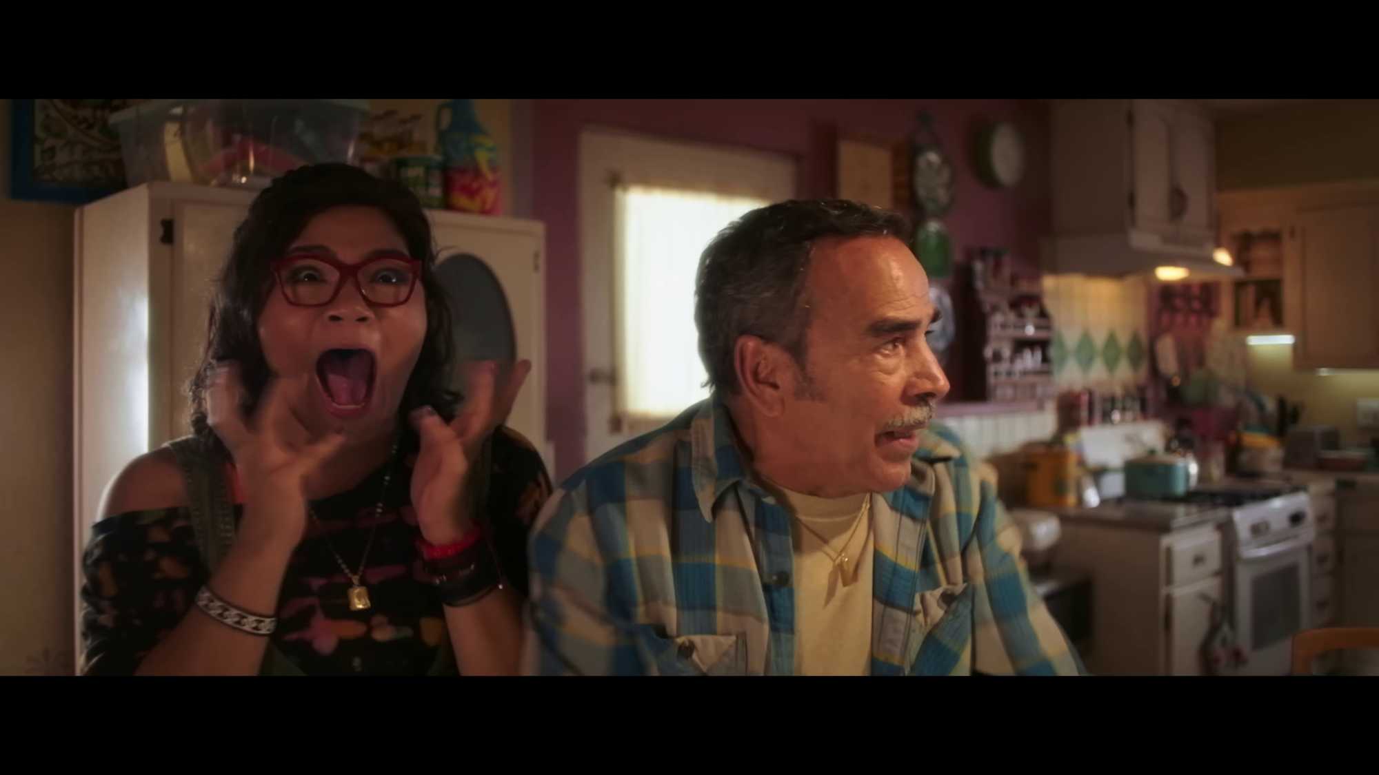 Charm City Kings director Ángel Manuel Soto spins the story with a bright, busy chaos, juggling nearly a dozen principal characters in what boils down to a tale of two families – Jaime’s close-knit clan, composed of Babel’s Adriana Barraza as his grandmother, Damián Alcázar and Predator’s Elpidia Carrillo as his parents, Belissa Escobedo as his younger sister Milagro and George Lopez as his conspiracy-nut uncle – and the splintered Kords, represented by Sarandon’s scheming Victoria, Bruna Marquezine as her good-hearted niece Jenny, Raoul Max Trujillo as Victoria’s cyborg henchman Carapax and Harvey Guillén as a Kord scientist who’s starting to develop a conscience about the whole working-for-a-corporation-that-has-cyborg-henchmen thing.