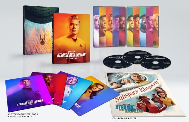 The complete WandaVision is available now in separate 4K and Blu-ray editions from Walt Disney Home Entertainment; the first two seasons of The Mandalorian are released in separate 4K and Blu-ray editions this Tuesday. Season Two of Star Trek: Strange New Worlds is available now in separate 4K and Blu-ray steelbooks from Paramount Home Entertainment; a Blu-ray set is also available in standard packaging, with a standard 4K set arriving in the new year.