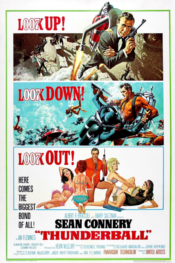 The stories escalate from Dr. No’s simple detective story to From Russia with Love’s quasi-Hitchcockian chase picture to Goldfinger’s heist thriller to Thunderball’s epic nuclear-blackmail gambit, with SPECTRE coming into its own as a global terrorist operation bent on ruling the world. It’s also the movie where Broccoli falls in love with supervillain lairs, having gotten a taste for it with Auric Goldfinger’s rumpus room in the previous picture.