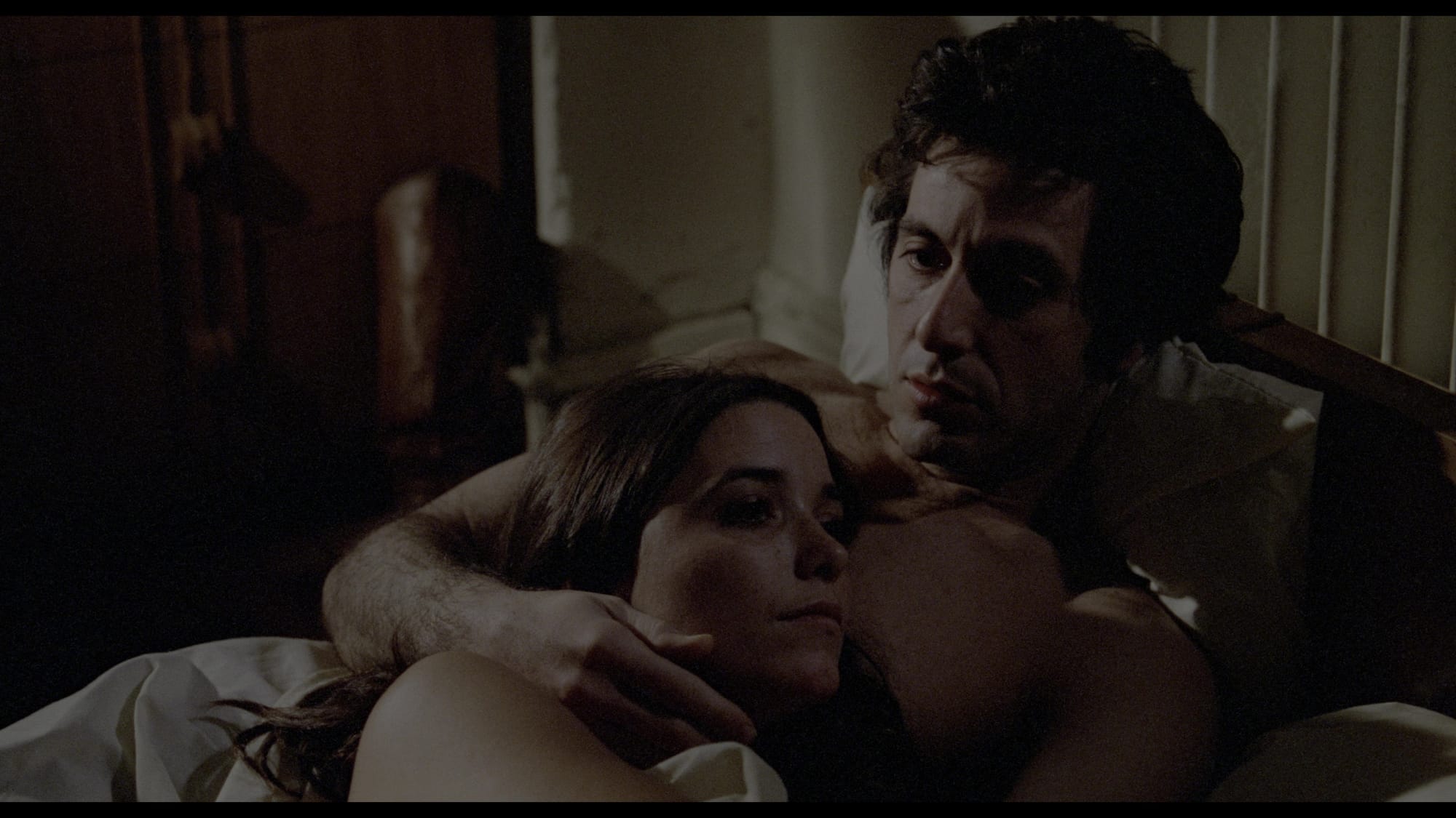 But Friedkin does understand the demands of a police procedural, and Pacino’s Steve Burns isn’t depicted as a homophobe: As is traditional in this genre, his fellow cops are presented as Neanderthals, so Steve can seem enlightened by comparison. Like any undercover cop, part of Steve’s assignment is to be bait – he’s chosen because he’s of similar coloring and build to the killer’s victim – and he plays his role well. His commitment even distances himself from his “old” life, estranging him from his very nice girlfriend Nancy (Karen Allen).