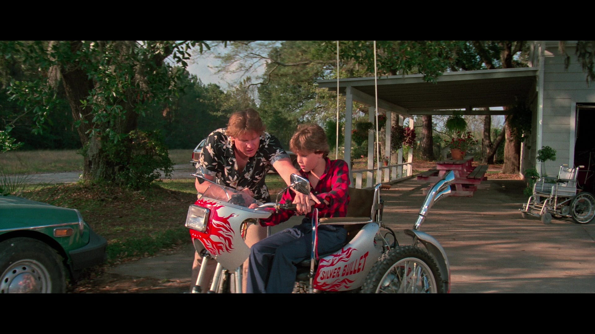 The cast is strong, but the movie doesn’t make the most of it: Corey Haim is just sort of there as the heroic Marty Coslaw, and though Megan Follows does some nice stuff in the corners as his older sister Jane she’s mostly relegated to the sidelines. The deep and loving bond between Marty and Uncle Red (Uncle Al in the book) is hung entirely on Busey’s shoulders, and he works overtime to sell it. And Everett McGill’s lycanthropic Reverend Lowe is reduced from a complex antagonist into a one-note creep.
