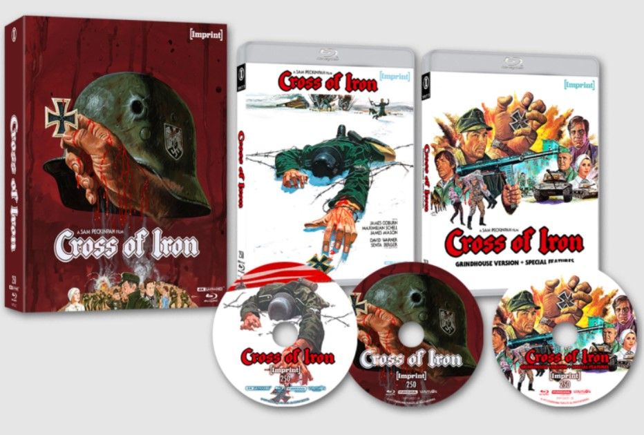 Cross of Iron brings in all the archival extras from the recent Studio Canal releases, with dense galleries of production photos and marketing materials, trailers and TV spots, an earlier commentary track from critic and author Stephen Prince and more featurettes from Siegel including conversations with cast members and a clip of Coburn and co-star David Warner introducing a screening of the film in 2000. A new interview with editors Tony Lawson and Michael Ellis contextualizes the fractious post-production process – which Peckinpah tried to make easier on his cutters by setting up a grill outside their office and providing a steady stream of barbecue – while makeup artist Colin Arthur discusses the grotesque specificity of the director's only war movie in a segment of his own.