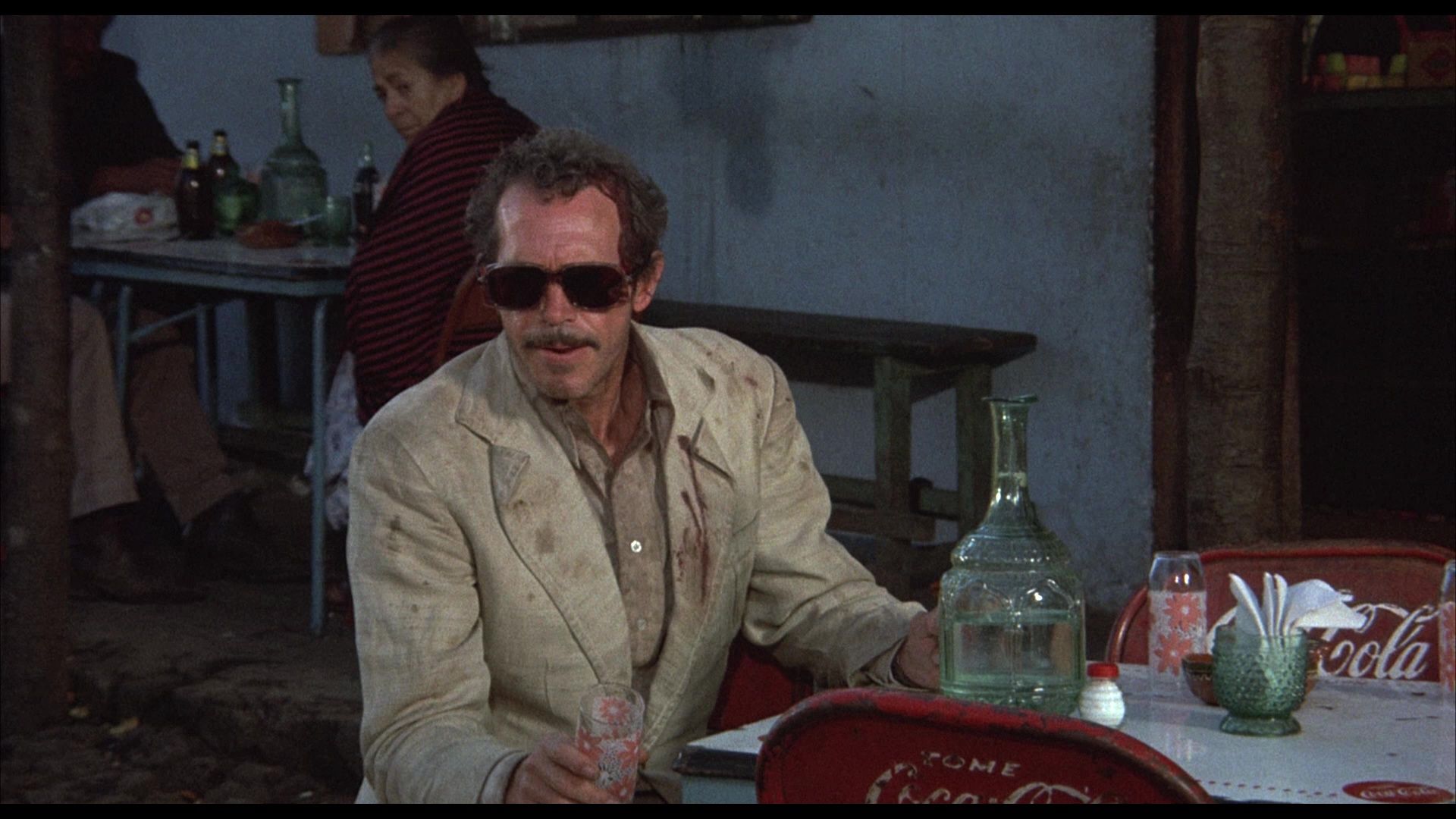 And make no mistake, Alfredo Garcia is very much a punk work, the sort someone like Alex Cox would instantly recognize and embrace. Warren Oates’ abject unlikability as Alfredo Garcia’s scheming, sweaty Bennie is a truly incredible turn from an actor of almost unnatural charm; Oates was one of those actors who brightened up every picture, even if he was playing a heavy, and here his every moment reads as utterly fraudulent – the phony confidence of a grasping, desperate man. Of course the moment his greed exceeds his minimal competence, it's all over.