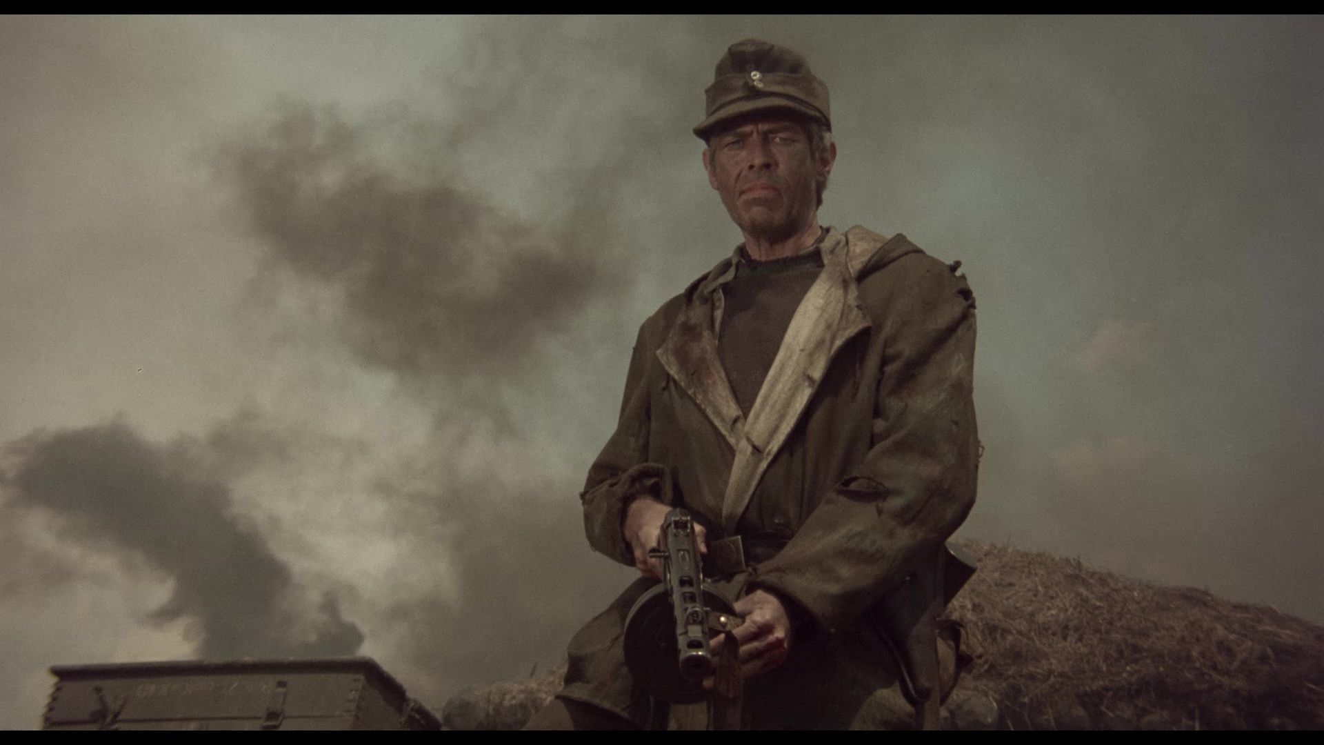 There’s also a small but fascinating cache of audio interviews with Peckinpah and his key cast recorded during production, and a “grindhouse” version of the feature, previously released on a 2017 German Blu-ray and mastered from a surviving 35mm print titled Steiner: The Iron Cross. Having just screened Kathryn Bigelow’s Blue Steel at the Lightbox from a decades-old print, this deliberately shabby presentation looks exactly right to my eye: The windowboxed, slightly altered 1.55:1 image, the cascading green “rain” of a scratchy print, the subtle wobble on credits and text and the idiosyncratic audio all contribute to the “authentic 70’s theatrical experience” promised on the box. Also, it just feels sleazier.