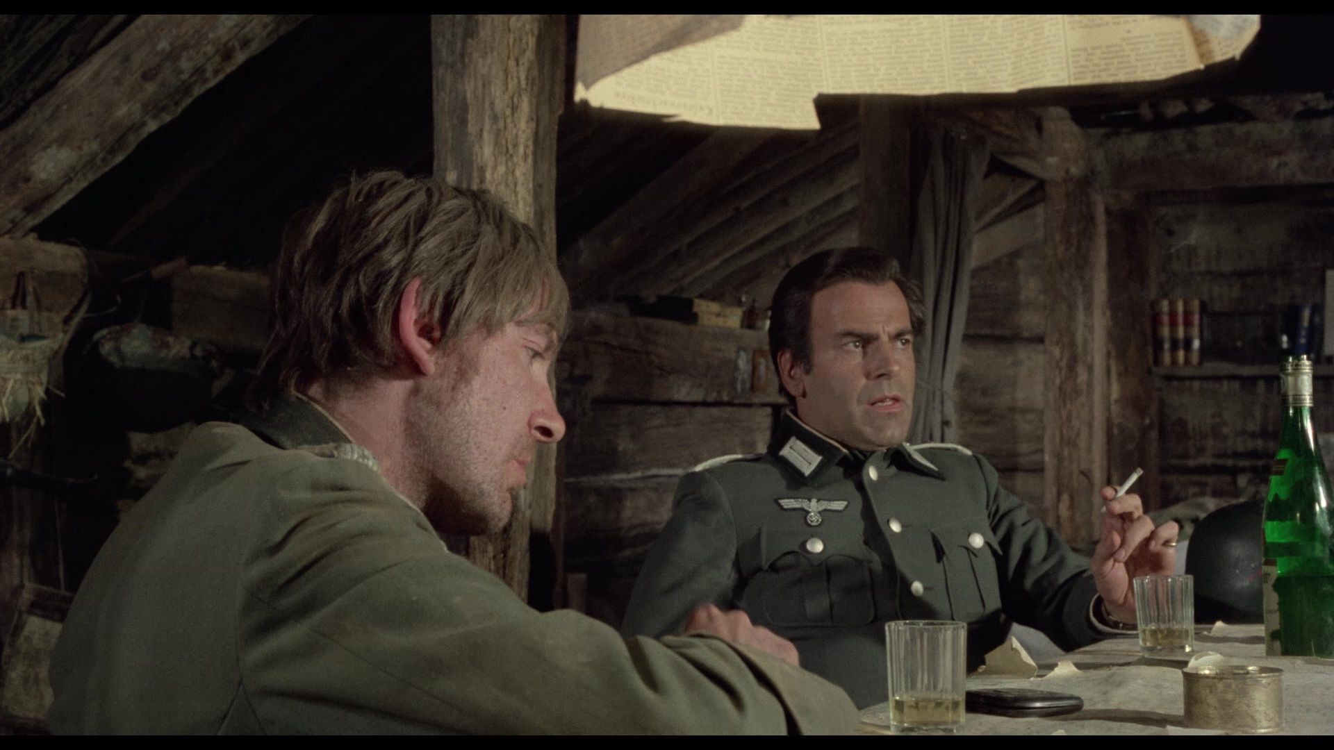 Cross of Iron takes place on the Eastern Front, with Coburn’s exhausted Steiner catching the ire of Maximillian Schell’s vainglorious career officer Stransky, who’s had himself assigned to Steiner’s regiment in an attempt to put himself in danger, the better to win an Iron Cross for bravery. When the Russians mount an assault and Stransky cowers in his barracks, leaving his subordinates to figure out a counterattack, Steiner and his comrade Meyer (Igor Galo) mount a defense that saves almost everyone – though Meyer is killed and Steiner is wounded, returning to discover Stransky has taken credit for the victory. Thus begins a battle of wills between the two men that can only end in annihilation.