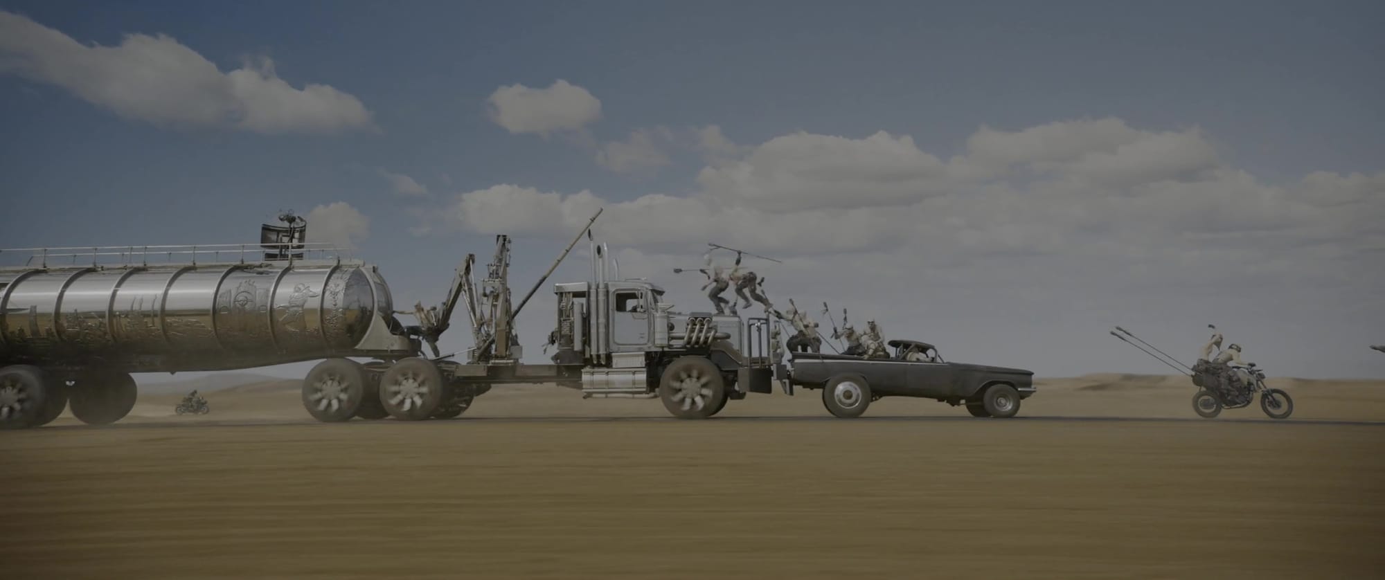Until now, all of that was taken as read, built into the fabric of the Mad Max movies as Miller’s vision grew more sophisticated and frenzied. Whether it’s Mel Gibson or Tom Hardy at the wheel, the world Max lives in is held together by chains and spot-welding, and the internal combustion engine is the only thing anyone can depend on. Maybe that’s because Miller started making these movies at the very beginning of the digital age, or maybe it’s because he just likes the harder, more concrete mechanics of cars, roads and deserts. It doesn’t matter. Here we are.