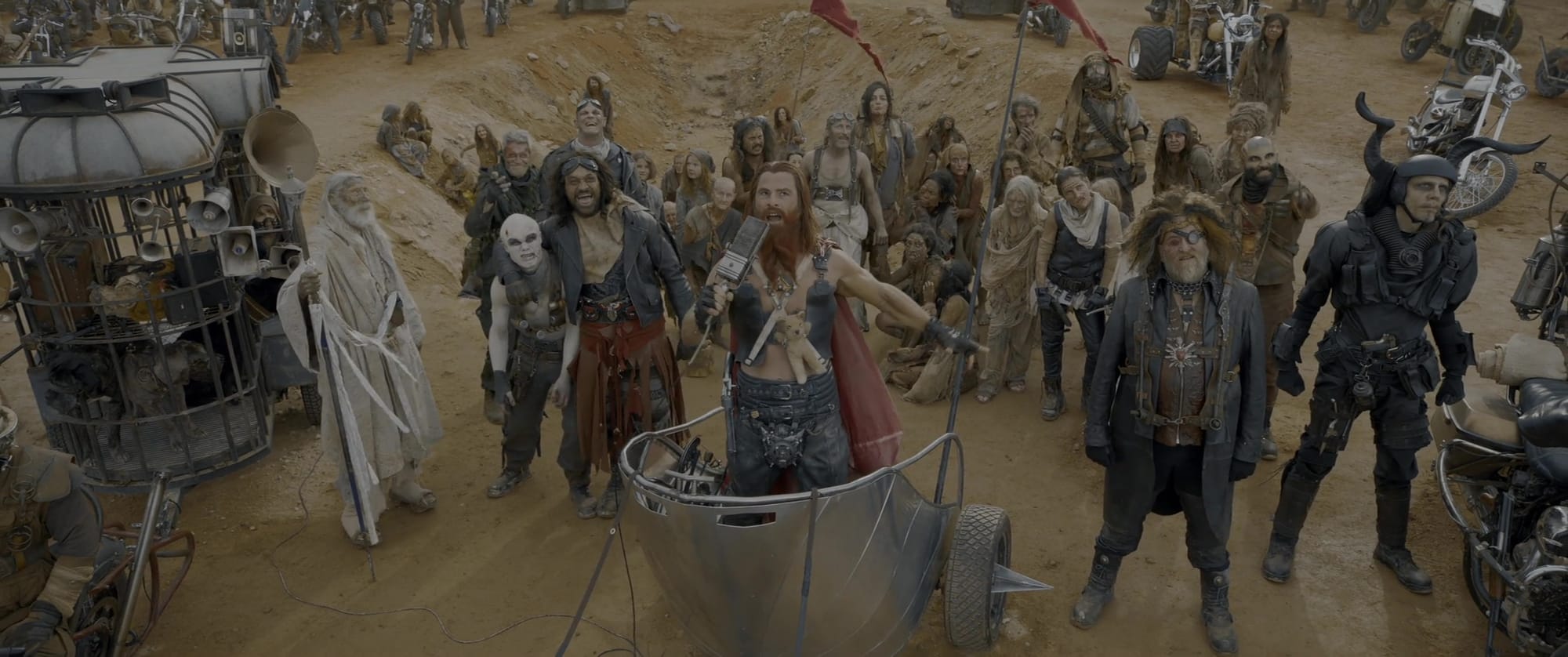 When we spoke for Fury Road, Miller told me the end of the world is always “forty years from next Wednesday”, and any details provided in the films always allude to an oil crisis that precipitates a global collapse. By the time we catch up to the characters, they don’t give a shit: This is the world they’ve inherited, and they know nothing else.