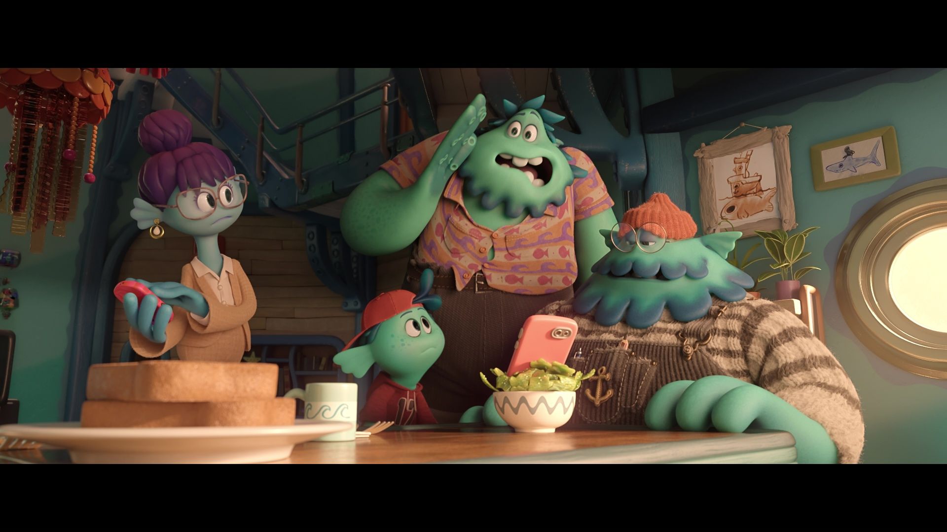 Ruby (voiced by Lana Condor), her parents (Toni Collette and Colman Domingo) and kid brother (Blue Chapman) have assimilated pretty well – they just tell everyone they’re Canadian, and because this is a kids’ movie that settles it – but “normal” life has its own pressures: There’s a cool new kid (Annie Murphy) at school, and maybe she’s got her eye on Ruby’s crush Connor (Jaboukie Young-White), and also prom is coming and what if he doesn’t ask Ruby out. All of which gets put to the side when Ruby discovers she’s the secret heir to a matriarchal undersea kingdom of giant krakens – who are not the monsters the myths made them out to be, but benevolent (if huge) sea creatures who keep the world safe from mermaids, among other things – and finds herself torn between claiming her birthright and just being a regular girl. And did I mention the whole mermaids-are-evil thing? Because that comes back.