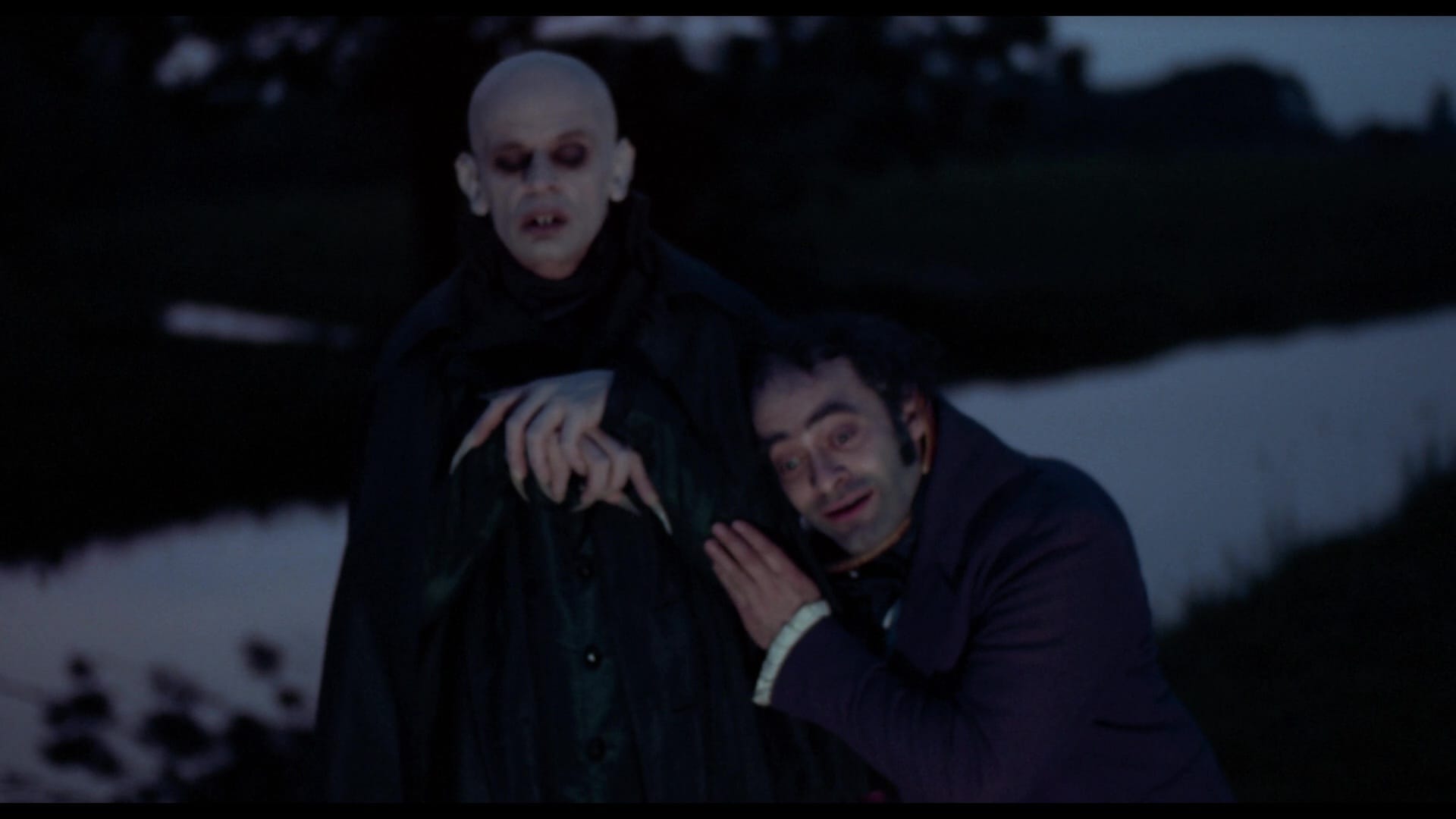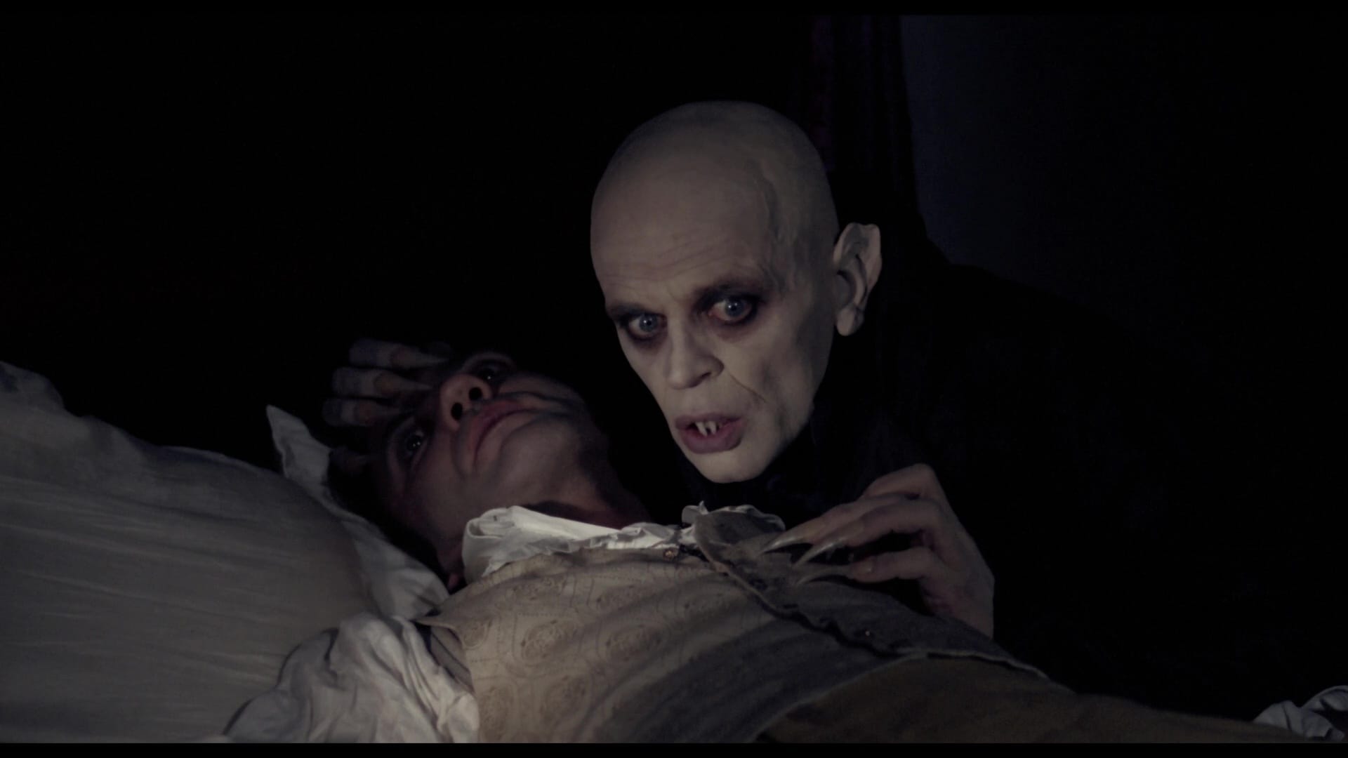 This release offers the same special features included on Shout’s previous Blu-rays, supporting the German version with a pair of audio commentaries from Herzog – an English track recorded for Shout, and an earlier German-language conversation with producer Laurens Straub – as well as a still gallery and an archival production featurette. And as is Shout’s custom, the Blu-ray has been re-authored with the restorations of both versions of Nosferatu. They look great, even at 1080p … but of course, the 4K presentation is so much darker. Have a torch ready.