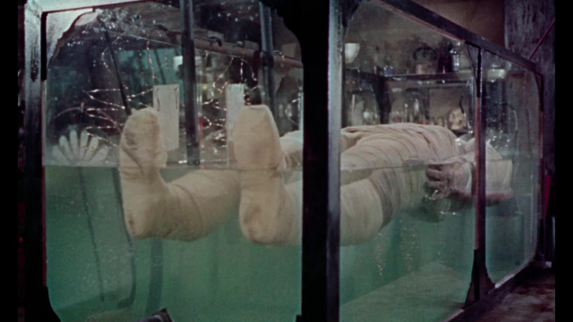 That Lionsgate disc also yields two featurettes, the retrospective making-of “Frankenstein Reborn” and “Life with Sir,” a pleasant reminiscence of Peter Cushing by his former secretary Joyce Broughton. (They’re on the Blu-ray disc, along with the extras from the 2020 Warner Archive BD and the ten-minute 8mm version of the film, in gloriously grainy black-and-white.)