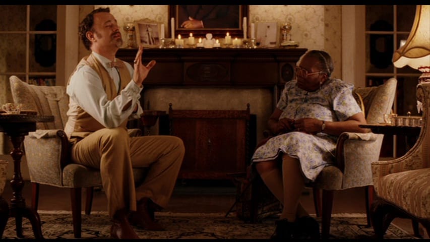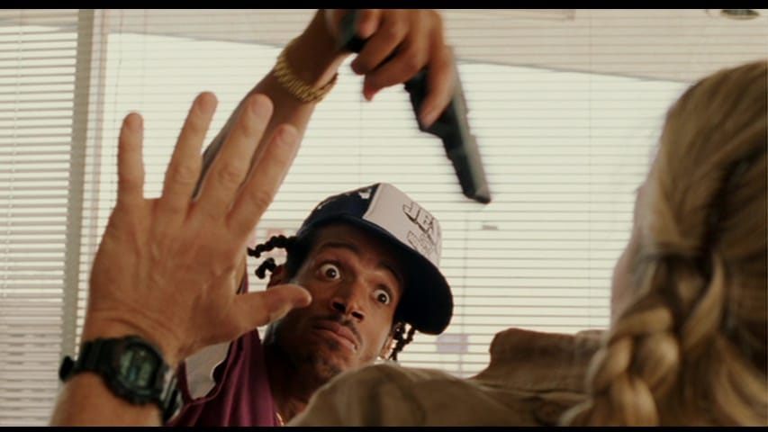 It’s bad, is what I’m saying, and no amount of Tom Hanks fuffering around in false teeth and a ridiculous demeanor is going to save it – nor J.K. Simmons doing his best hail-fellow-well-met idiot, nor Tzi Ma as a no-nonsense demolitions expert, nor a very young Aldis Hodge (above!) as Doughnut Gangster #1. I’d love to know what kind of movie he thought he’d been cast in.