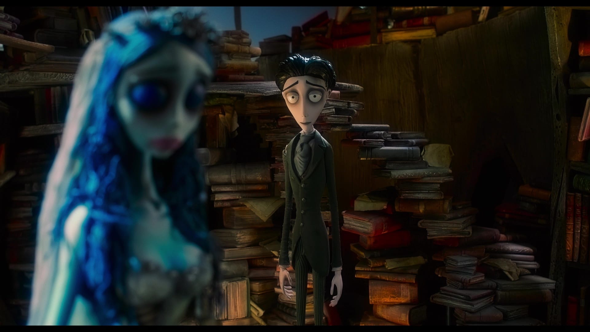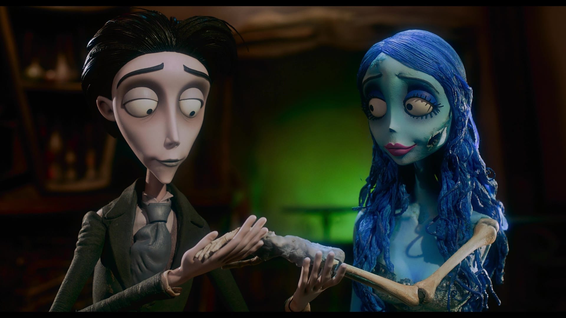 Warner’s new 4K disc is built around a beautiful new 2160p/24 presentation of the feature, with remixed Dolby Atmos audio, and if you’re impressed with the quality of these screen grabs your eyes may well pop out when you see them with the additional depth and color offered by HDR. Corpse Bride was the first stop-motion feature to be shot with DSLR cameras, allowing the animators to get closer to the puppets than was previously possible, and the 4K upscale of the 2K digital intermediate is breathtaking.