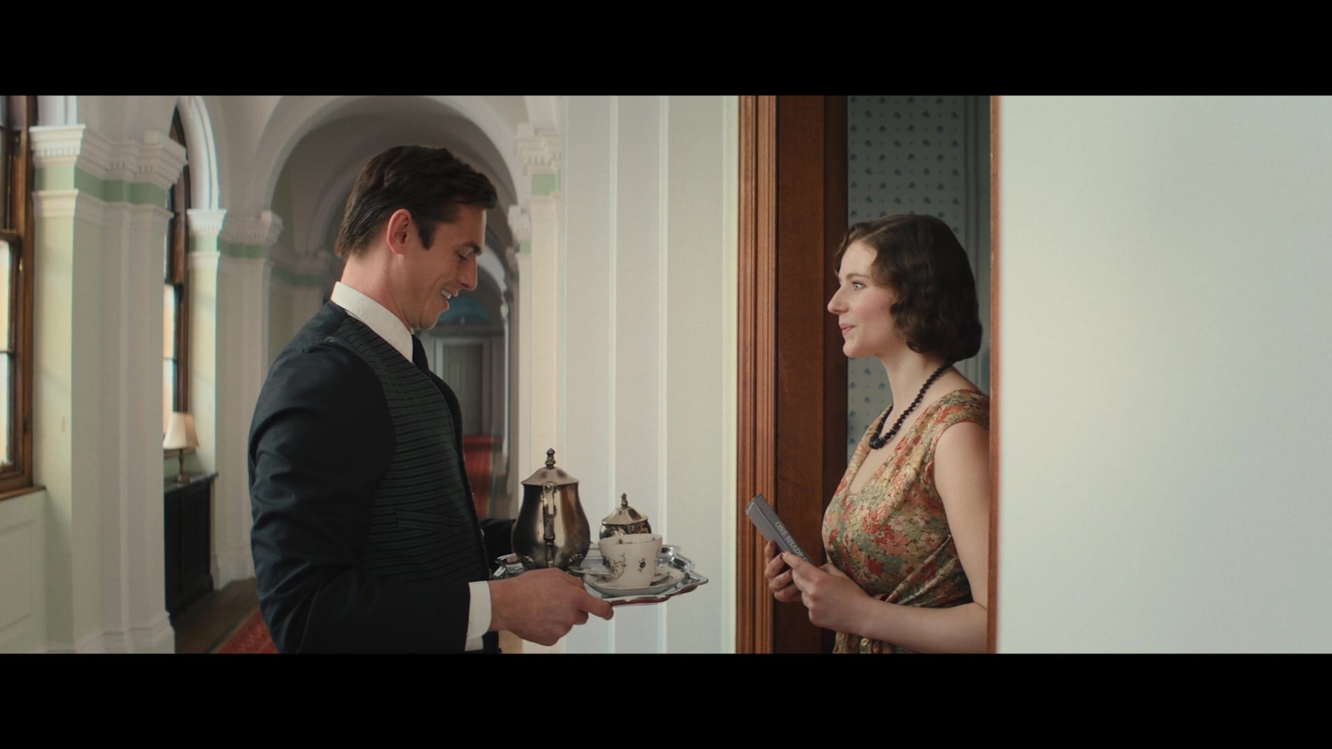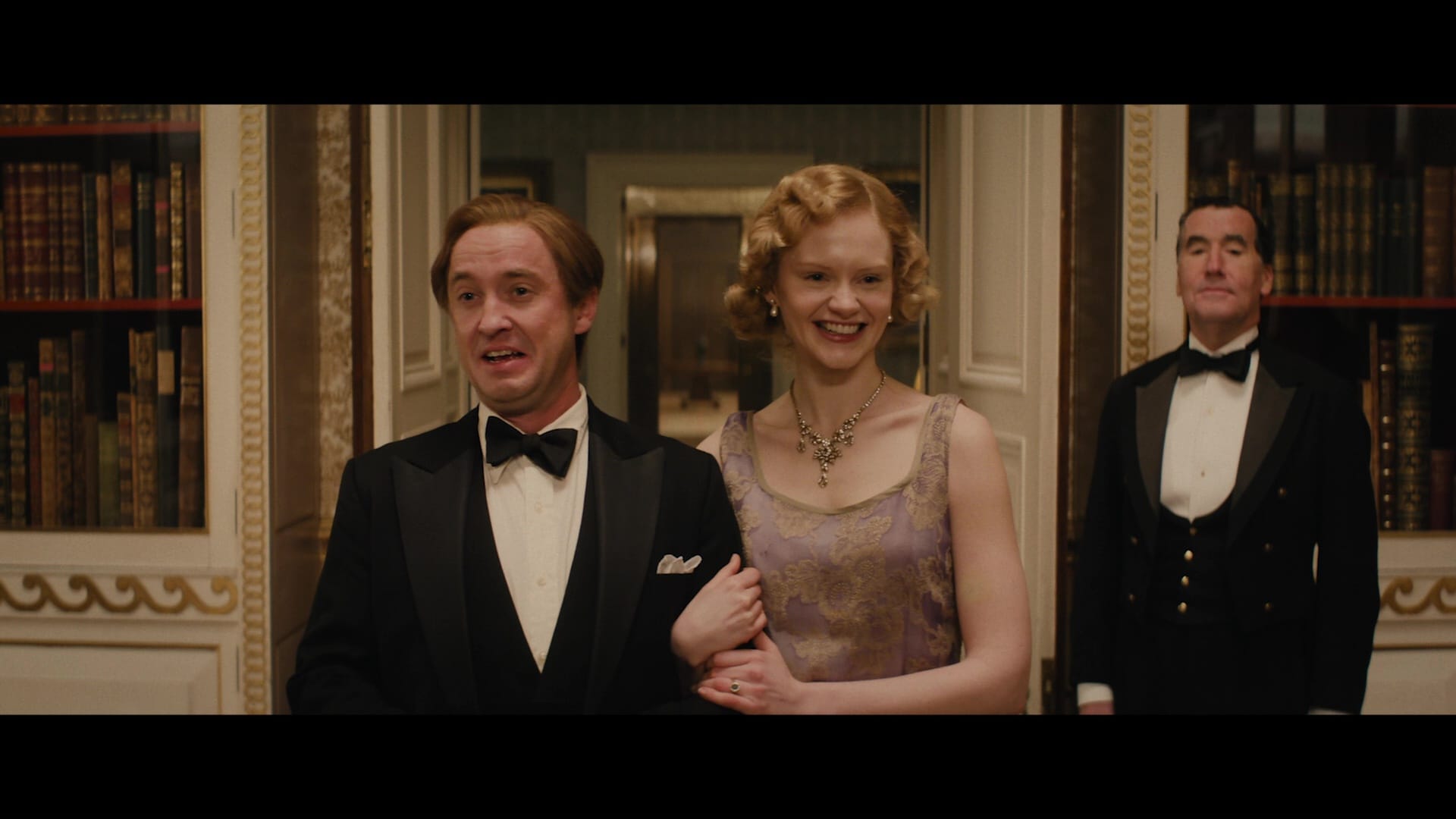 Eldest daughter Poppy (Emma Laird) ditches stuffy fiancé/cousin (Tom Felton) at the altar, her younger sister Rose (Thomasin McKenzie) falls for penniless hall boy Eric Noone (Ben Radcliffe), and the kindly Lord Davenport (Damien Lewis) is found stabbed, shot, poisoned and strangled in his study, which lets the writing team incorporate a Gosford Park parody, too.