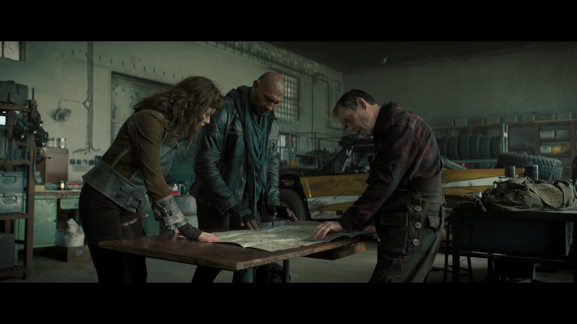 Six years after solar flares blew out the Earth’s electronics and plunged the planet into chaos, Europe has clawed its way back to an uneasy feudalism. Dave Bautista is Jake, the guy you call when you need to find something extremely rare; these days he mostly works for August Valentine (Samuel L. Jackson), a benevolent warlord who’s just crowned himself King of England.