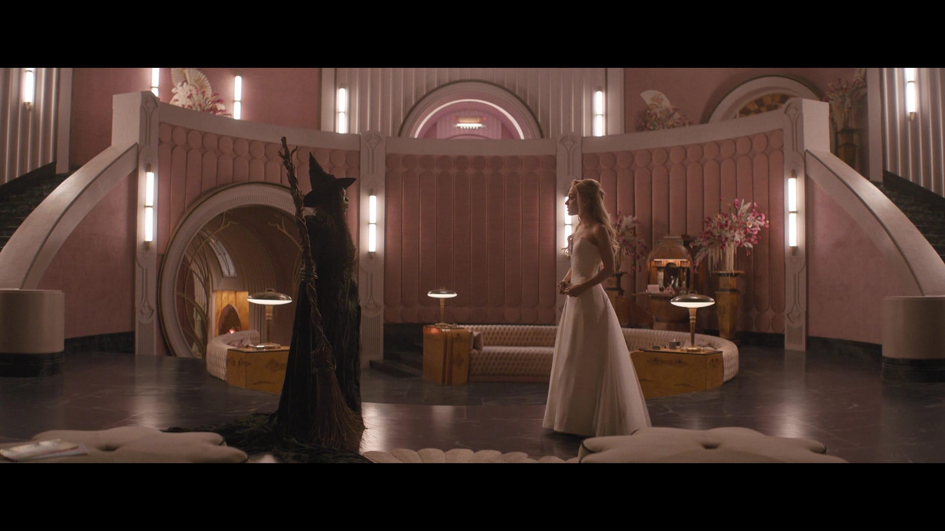It probably worked a lot better in the live show, where various surprises would be achieved practically to dazzle the audience – and, more to the point, where the story could move so quickly said audience wouldn’t have time to think about how contrived and illogical those surprises are. As in the first film, stretching everything out to twice its length means padding everything out, in one case cutting away a climactic ensemble number (“March of the Witch Hunters”) so Glinda can sing a new song (“The Girl in the Bubble”), then returning to the earlier number already in progress. Certain tricks that worked in the play – like keeping certain characters out of the audience’s sight – are fumbled here, and other plot points have been rewritten into incoherence.