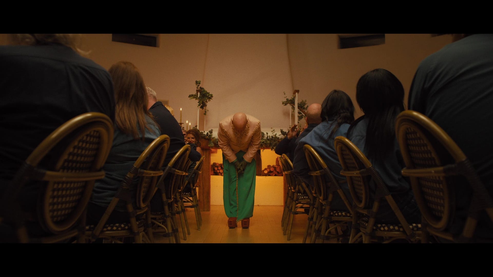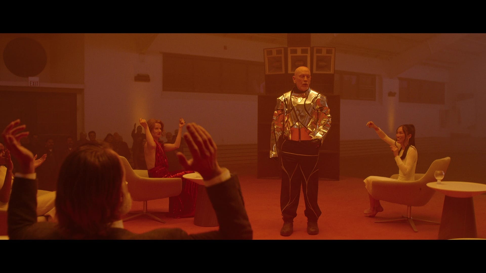 It’s just two people enjoying a conversation. The other stuff – the shaving, the compulsory oyster shucking, the puppet show, the spooky “concierges” following the guests everywhere – that’s just weird stuff in the background. Until it isn’t.