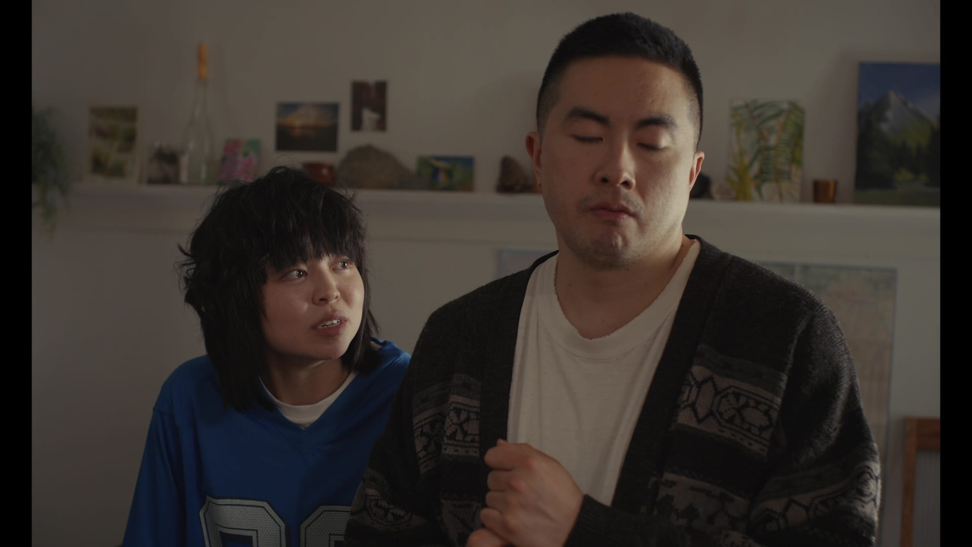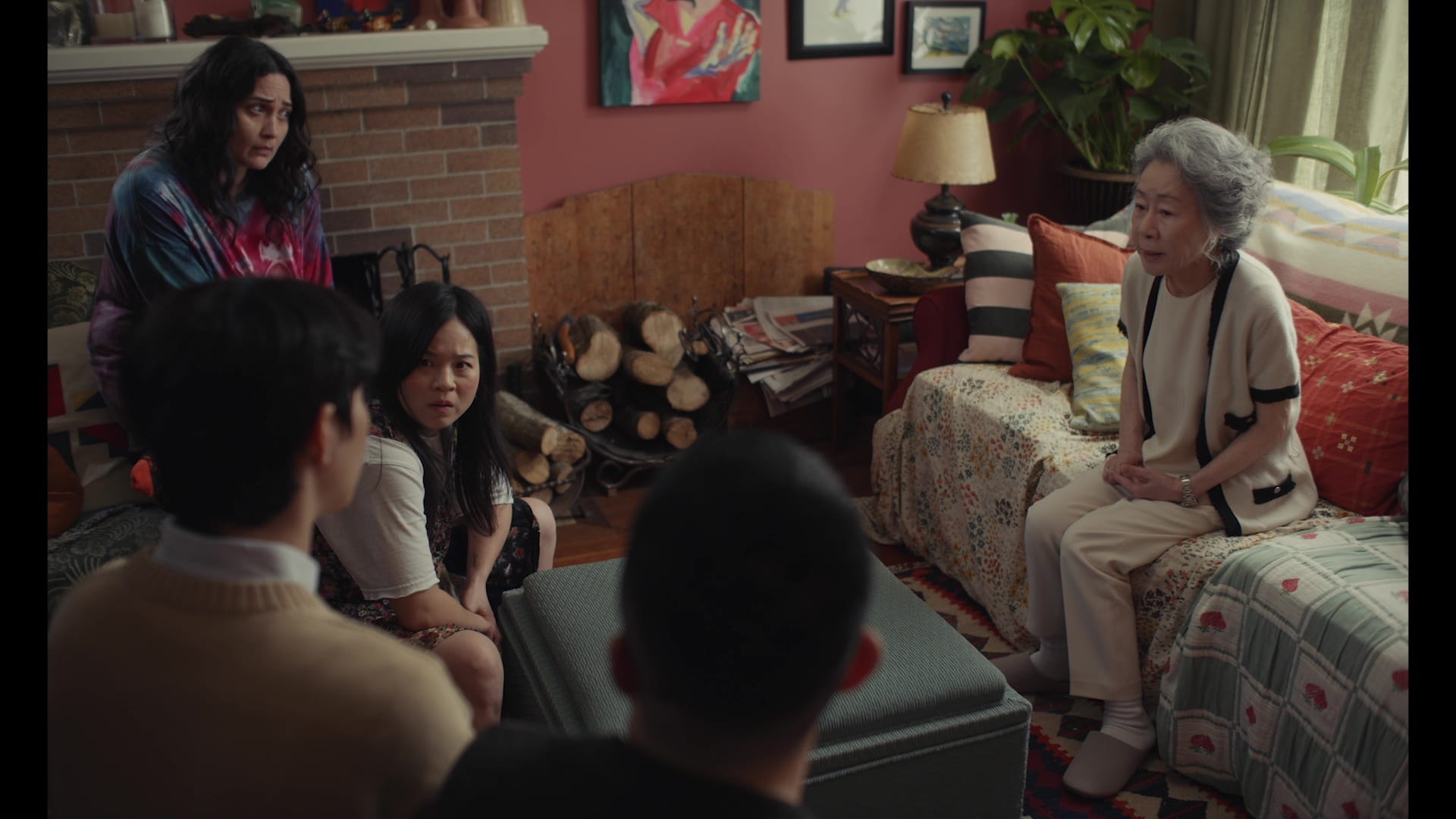 Angela (Kelly Marie Tran) and Lee (Lily Gladstone) are trying to have a baby. Angela’s best friend Chris (Bowen Yang) lives in their garage with his artist boyfriend Min (Han Gi-chan). But Min’s student visa is expiring, and his wealthy grandmother Ja-young (Youh Yun-jung) expects him to join the family business in Korea. Min proposes to Chris, but Chris doesn’t want to be a husband of convenience, so Min suggests he marry Angela, and pay for the IVF treatment she and Lee can’t really afford.