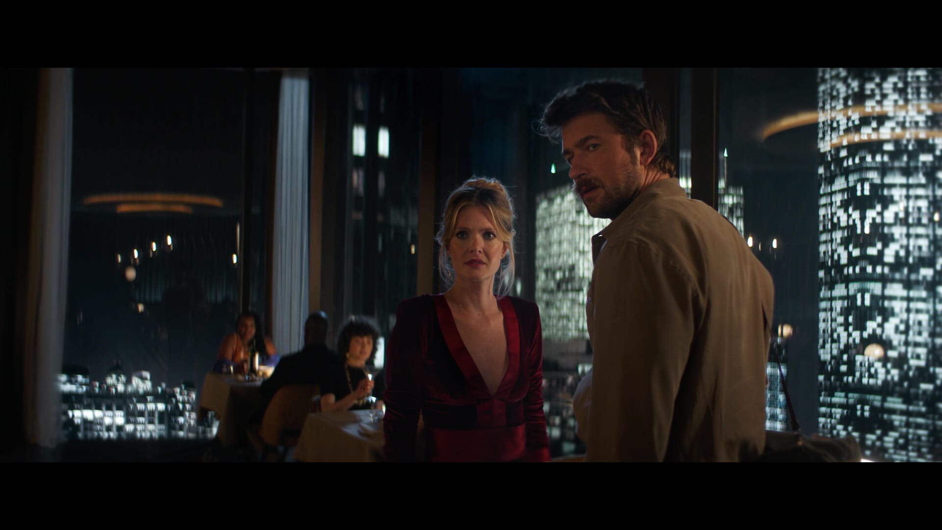 It's a textbook Hitchcockian premise – an ordinary person suddenly forced to navigate a world of danger and menace – and one that always benefits from a restricted location. I’m thinking fondly of the way Wes Craven and Jaume Collett-Serra used the confinement of an airplane in Red Eye and Non-Stop, respectively. Drop’s director is Christopher Landon, who demonstrated a sure hand with genre pictures in the Happy Death Day movies and Freaky, among others; he was briefly set to direct the next Scream movie, and Drop suggests he would have been a decent fit for the polished, classical style of that franchise. But I’m glad he made Drop, because Drop has all the fun of a Scream picture without any of the expectations.