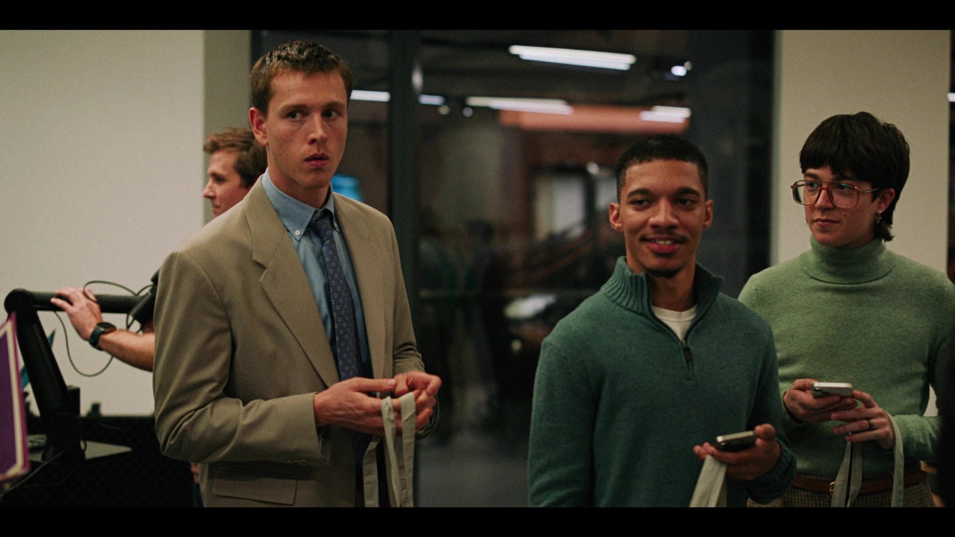 The second featurette, “Power Looks,” lets costume designers Kurt and Bart unpack the looks they designed for each character, and how Romy’s outfits don’t actually evolve over the course of the picture … but how she wears them does. They also expand on the only fashion detail I actually noticed, which is that Samuel’s suit is deliberately ill-fitting, signaling that he’s not nearly as mature or composed as he wants to be, and that both the character and Harris Dickinson look much more comfortable in the athletic wear Samuel sports when he’s out of the office.