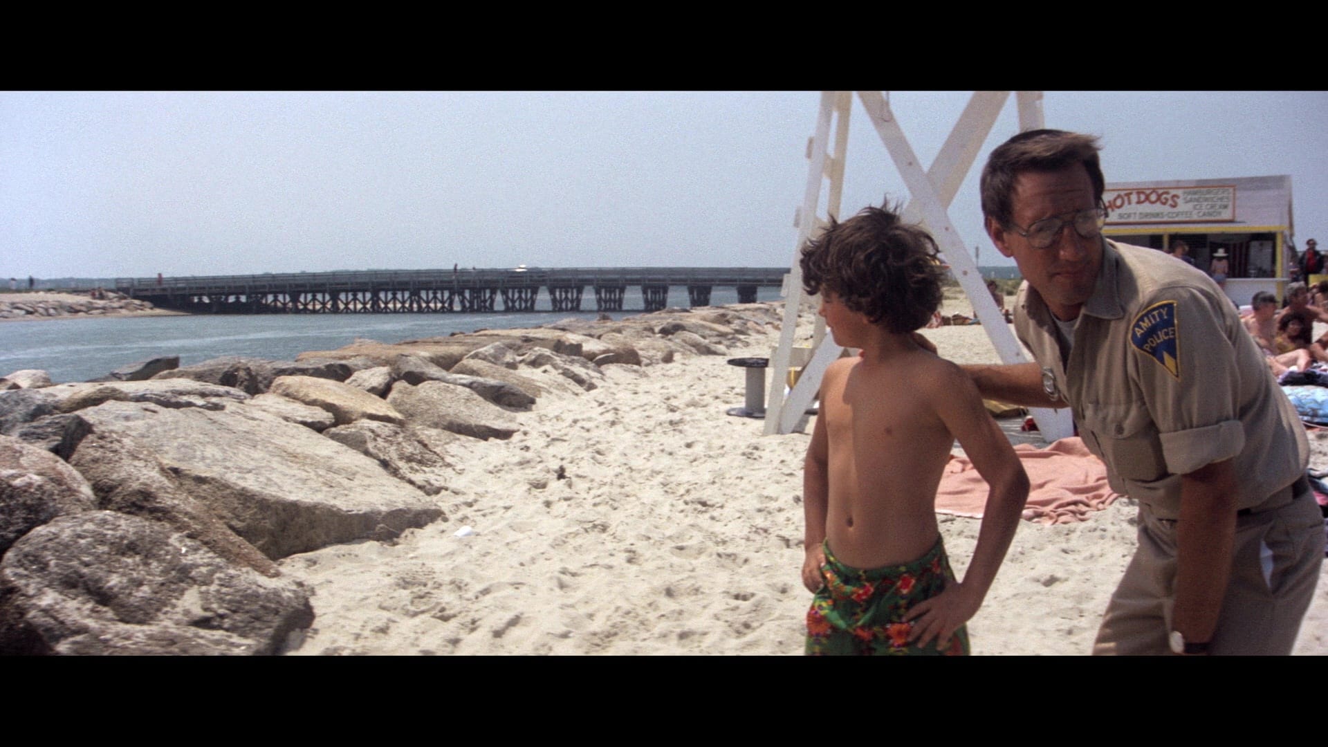 Jaws received an exemplary 4K release in the summer of 2020, with a meticulously graded Ultra High Definition master that rendered the feature as faithfully as possible to its original look and texture without going overboard: The night scenes, so crucial to this movie, were organically dark rather than carrying that extra layer of shadow that can creep into a digital feature. The only obvious HDR bump I noticed was the aura of Hooper’s tracking device blinking a little more vividly green as a barrel approaches the Orca; otherwise there’s nothing in this presentation that looks in any way contemporary. It’s 1975 in there, just as it ought to be.