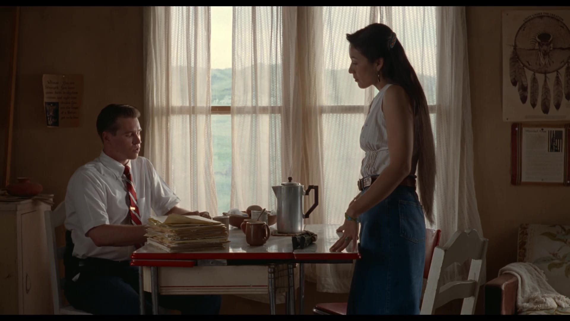 All that said, does Thunderheart feel a little dated? Of course! It opens with Springsteen’s “Badlands” on a car radio! Thunderheart is a studio thriller from the spring of 1992, arriving just two weeks after Basic Instinct goosed the genre into all sorts of fun new contortions. But compared to Joe Eszterhas and Paul Verhoeven’s gleefully ludicrous cokehead spiral, Apted’s film looks like a sober, thoughtful drama. It was also shot by a youngish Roger Deakins, who never met a conventional setup he couldn’t elevate.
