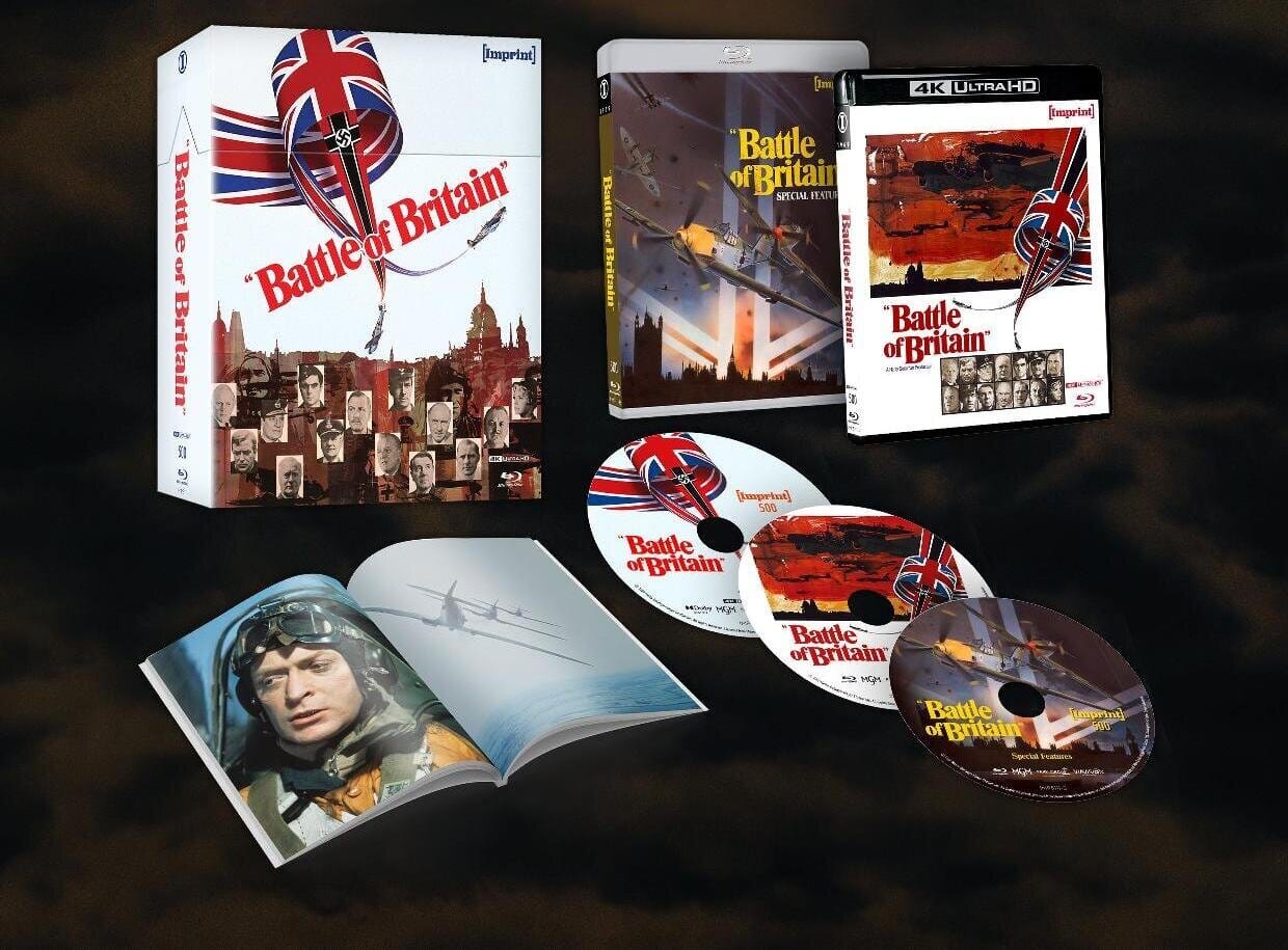 Battle of Britain is the 500th Imprint title from Via Vision, and it’s been given the deluxe treatment admirers of that boutique line have come to expect. The three-disc set is packaged in the signature Imprint hardbox, with the feature offered in both 4K and Blu-ray – both mastered from the new restoration, of course – and accompanied by a slew of new and archival supplements.