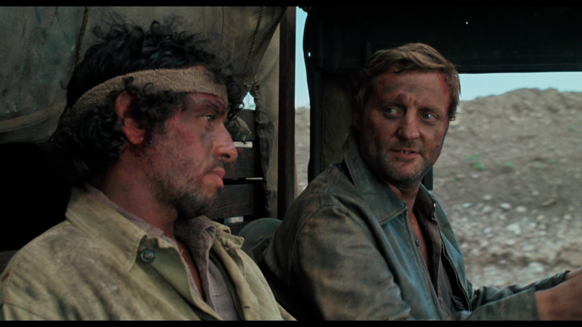 I don’t think this appears anywhere in the text, which is heavy with doom and despair from the very first. The kindness in Scheider’s eyes draws us in, but there’s plenty of darkness in his heart. We aren’t given the same opportunities to connect with his traveling companions: As a hitman, a weasel and a terrorist, respectively, Franciso Rabal, Bruno Cremer and Amidou are all clearly shitty people, and knowing their histories means we get to wonder whether they’ll turn on Scheider, or each other, when things get rough. Get out. Walk away. Start again. But of course this isn’t that kind of story.